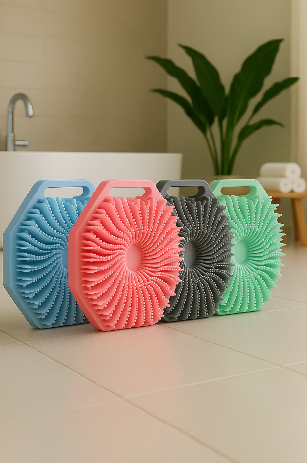 Im Vergleich zu herkömmlichen Duschschwämmen bleibt unser Silikon-Scrubber hygienisch sauber, trocknet schneller, hält länger und entfernt 100 % abgestorbene Hautzellen, während er deine Haut sanft massiert und spürbar glatter macht.